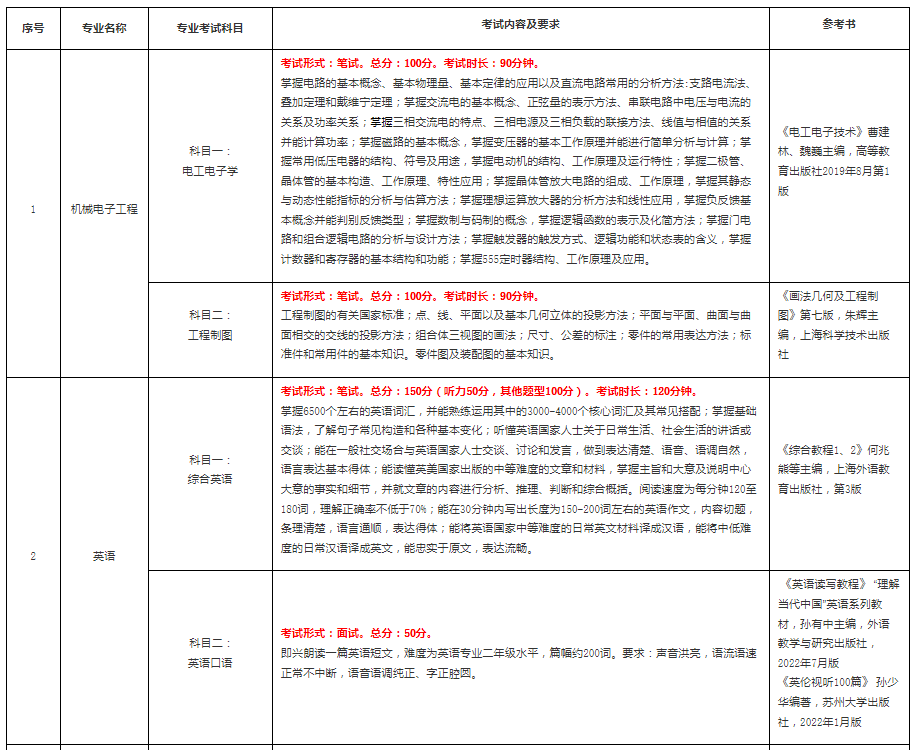 苏州城市学院2025年五年一贯制高职“专转本”专业科目考试内容及要求
