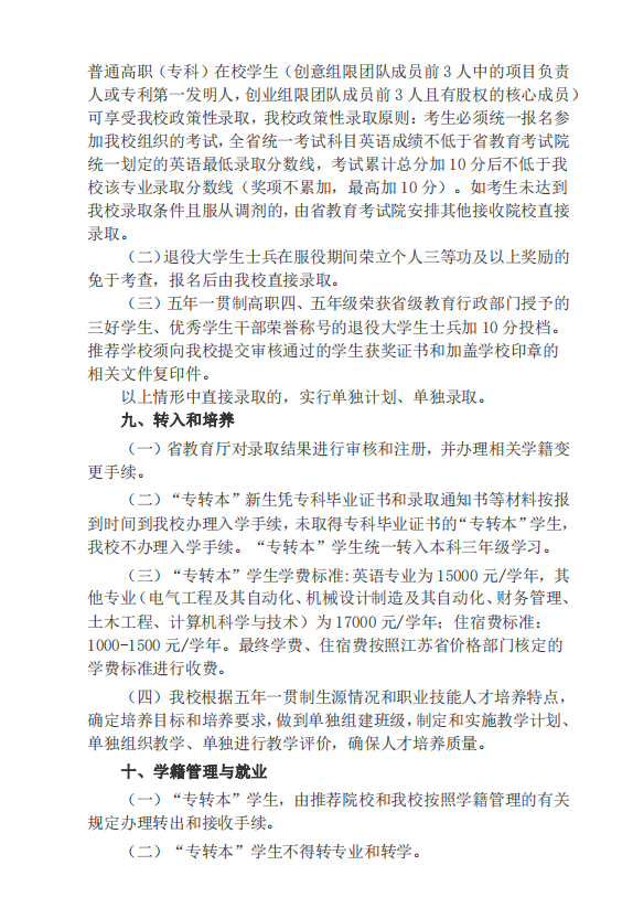 【三江学院】2023年五年一贯制专转本各专业考试内容!